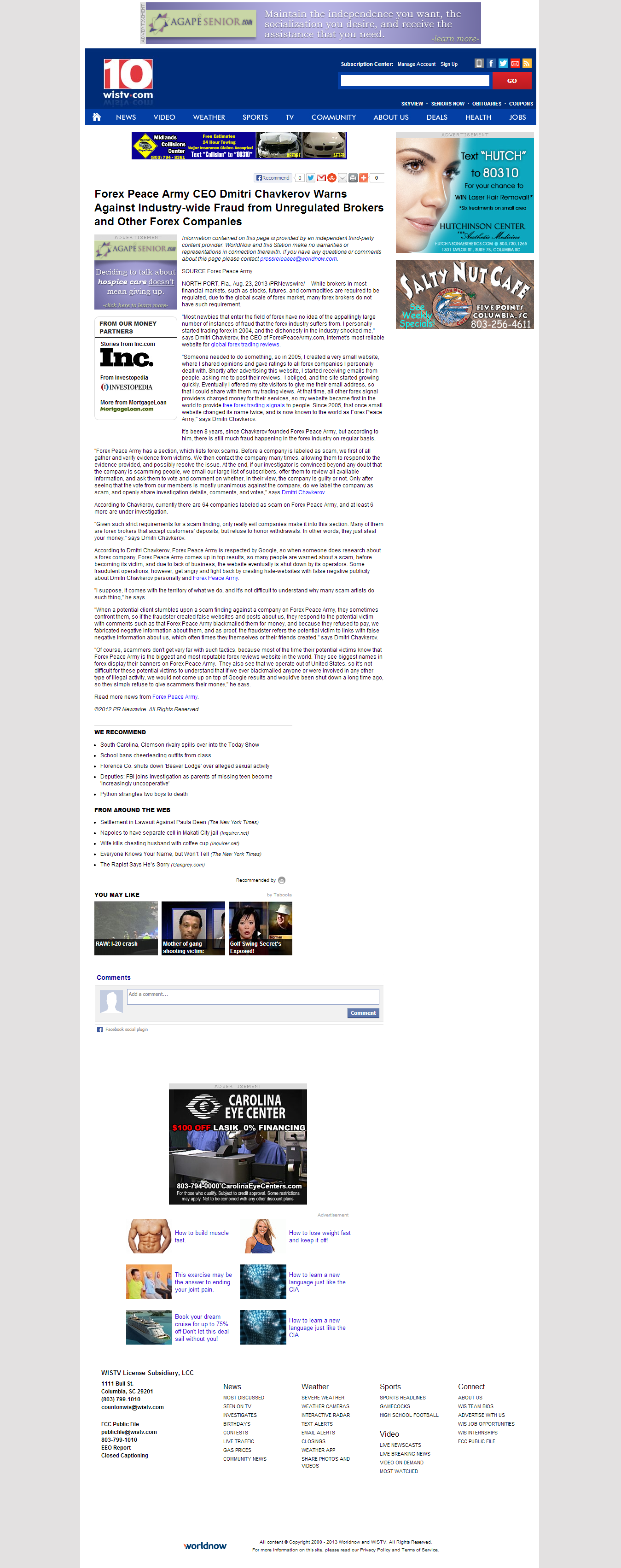 Forex Peace Army | Unregulated Forex Fraud Press Release in WISTV NBC-10 (Columbia, SC)