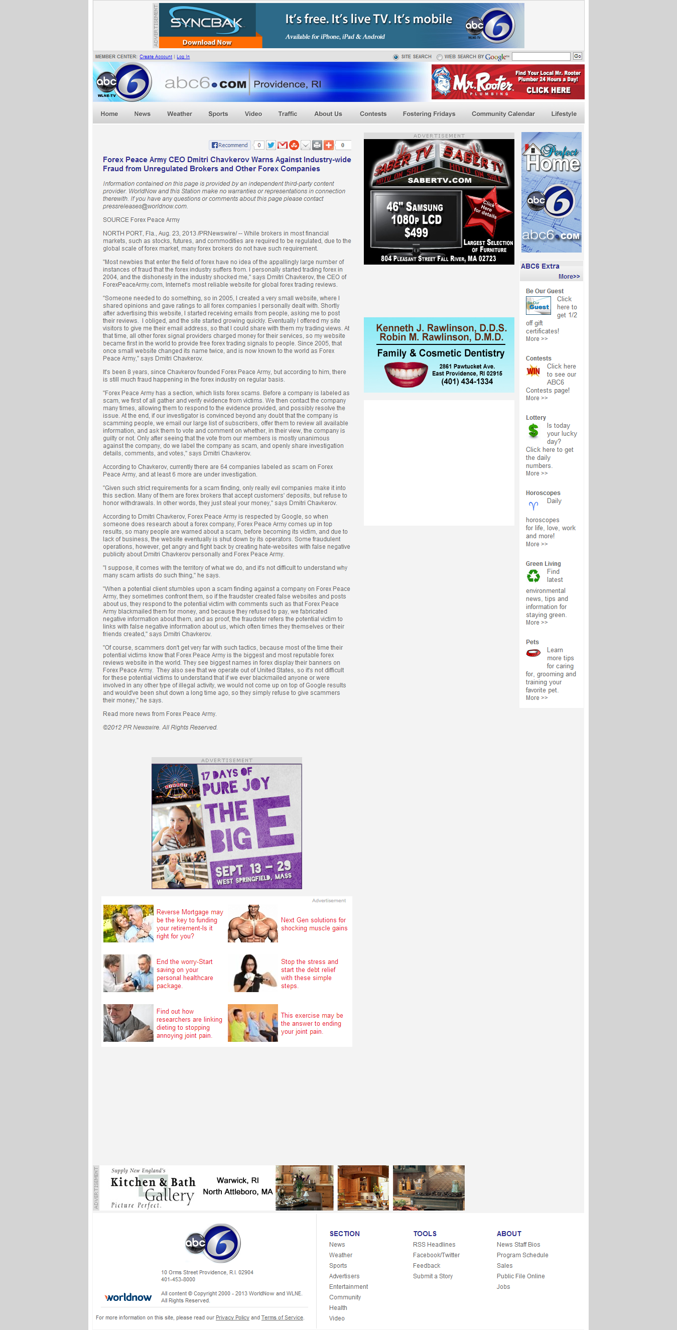 Forex Peace Army | Unregulated Forex Fraud Press Release in WLNE-TV ABC-6 (Providence, RI)