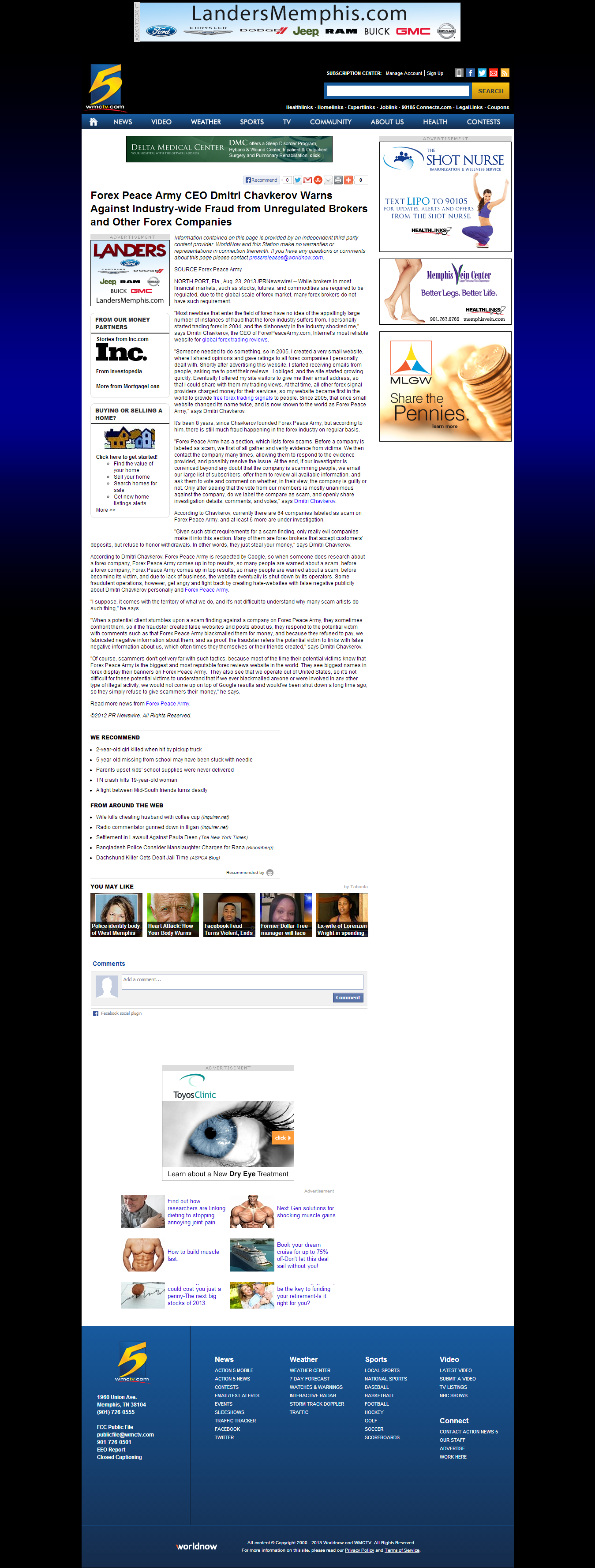 Forex Peace Army | Unregulated Forex Fraud Press Release in WMC NBC-5 (Memphis, TN)