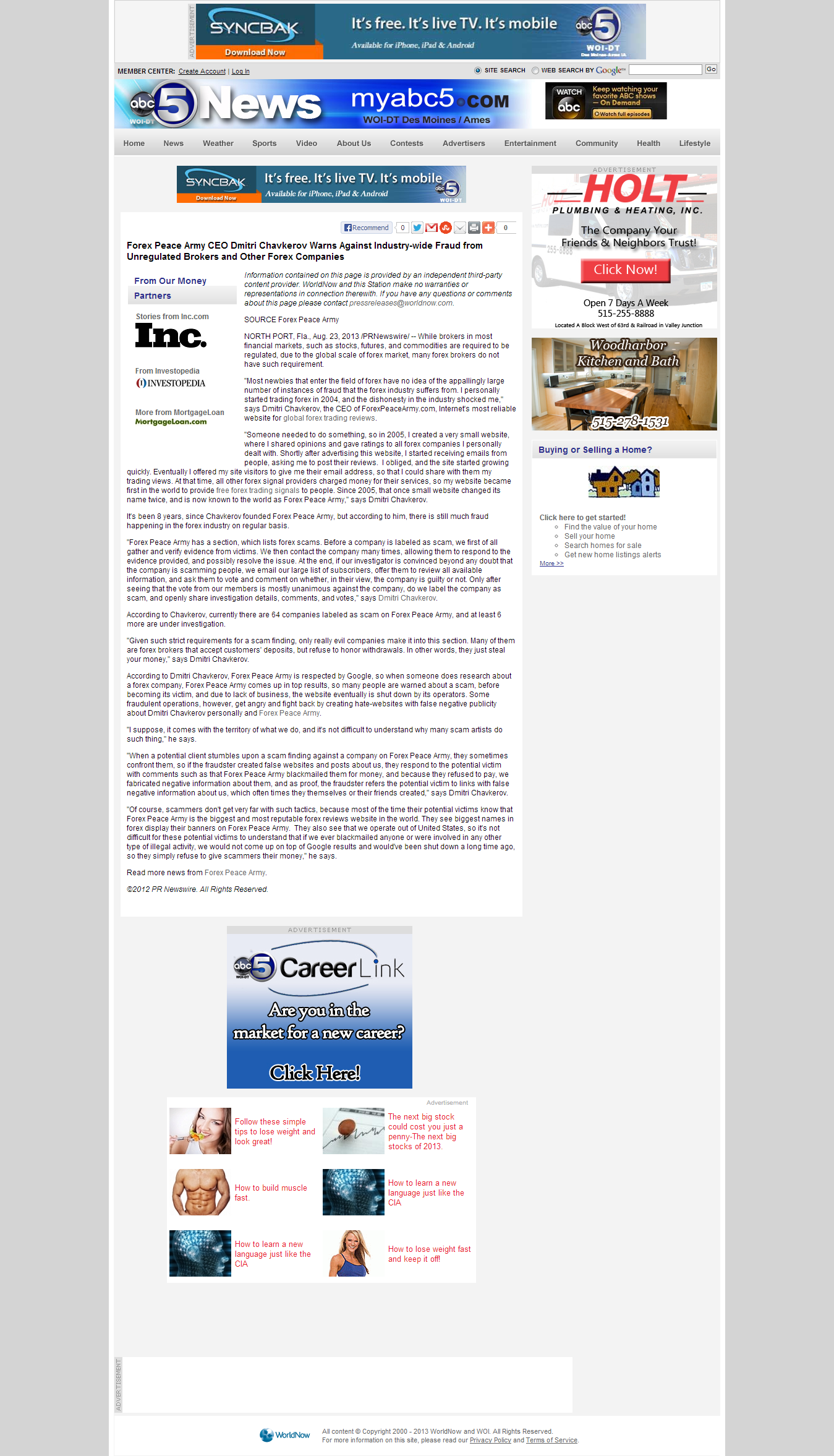 Forex Peace Army | Unregulated Forex Fraud Press Release in WOI ABC-5 (West Des Moines, IA)