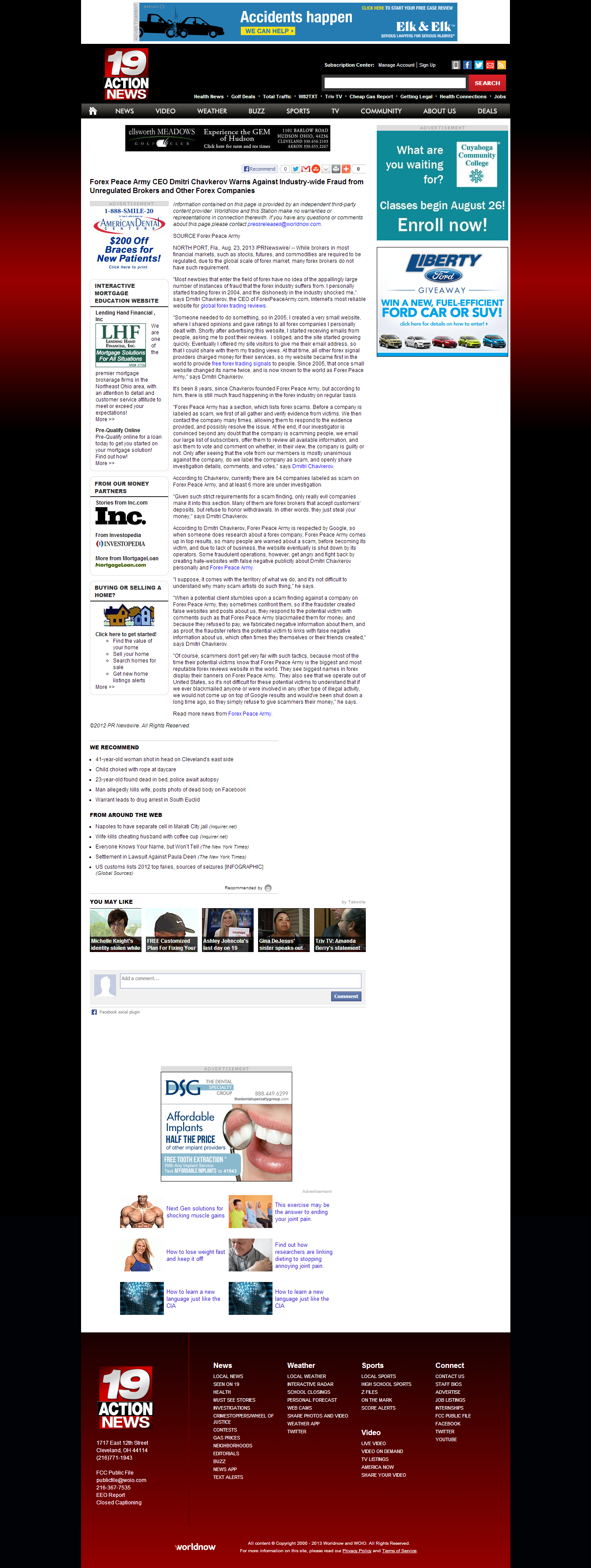 Forex Peace Army | Unregulated Forex Fraud Press Release in WOIO CBS-19 (Cleveland, OH)