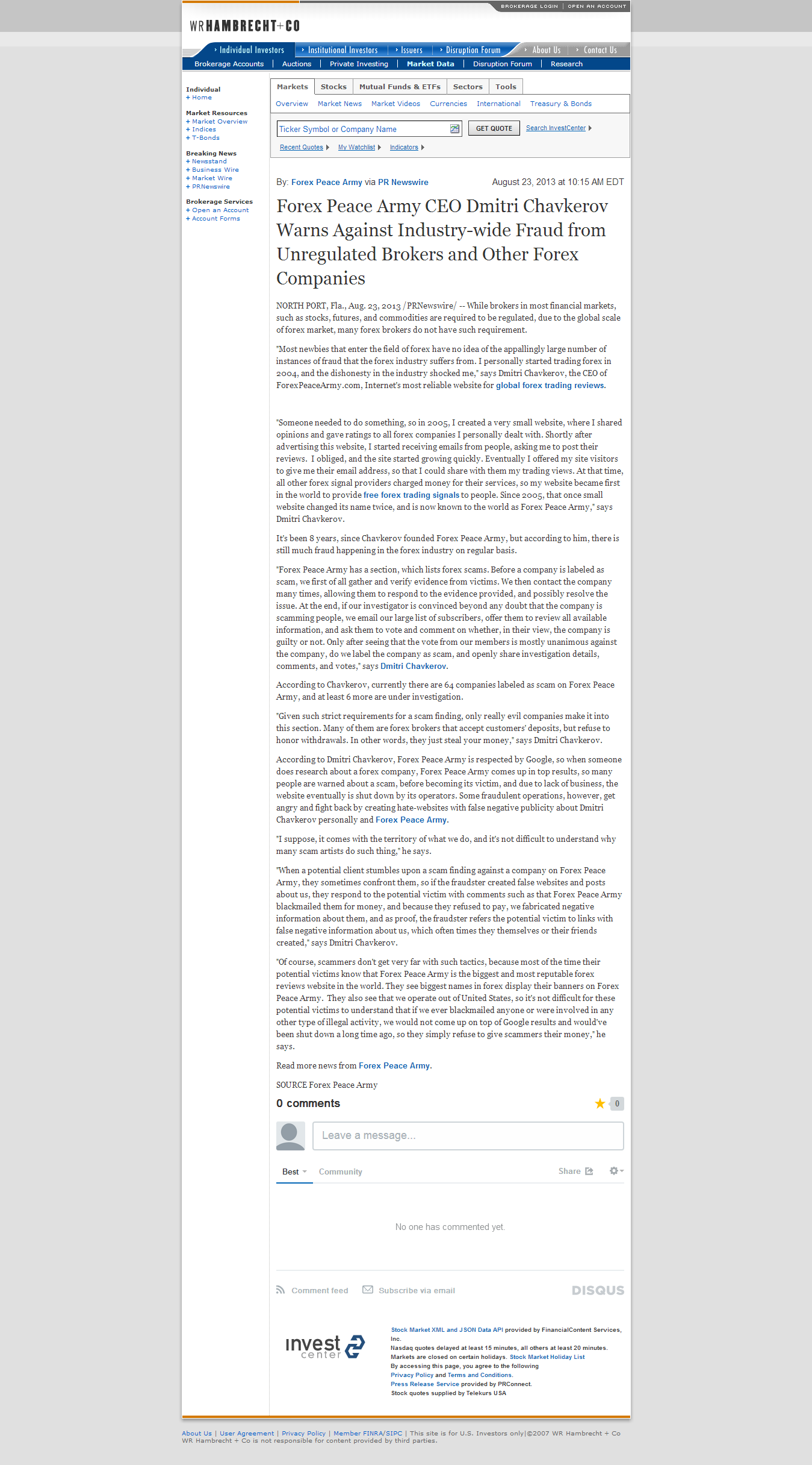 Forex Peace Army | Unregulated Forex Fraud Press Release in WR Hambrecht & Co.
