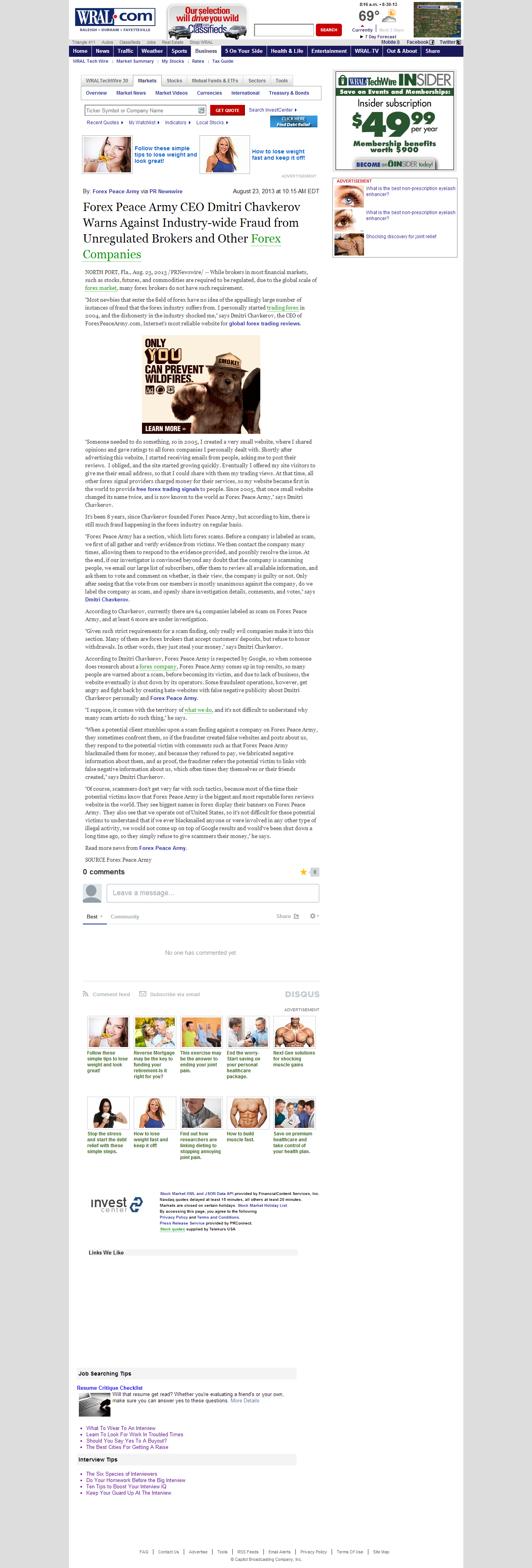 Forex Peace Army | Unregulated Forex Fraud Press Release in WRAL-TV CBS-5 (Raleigh, NC)