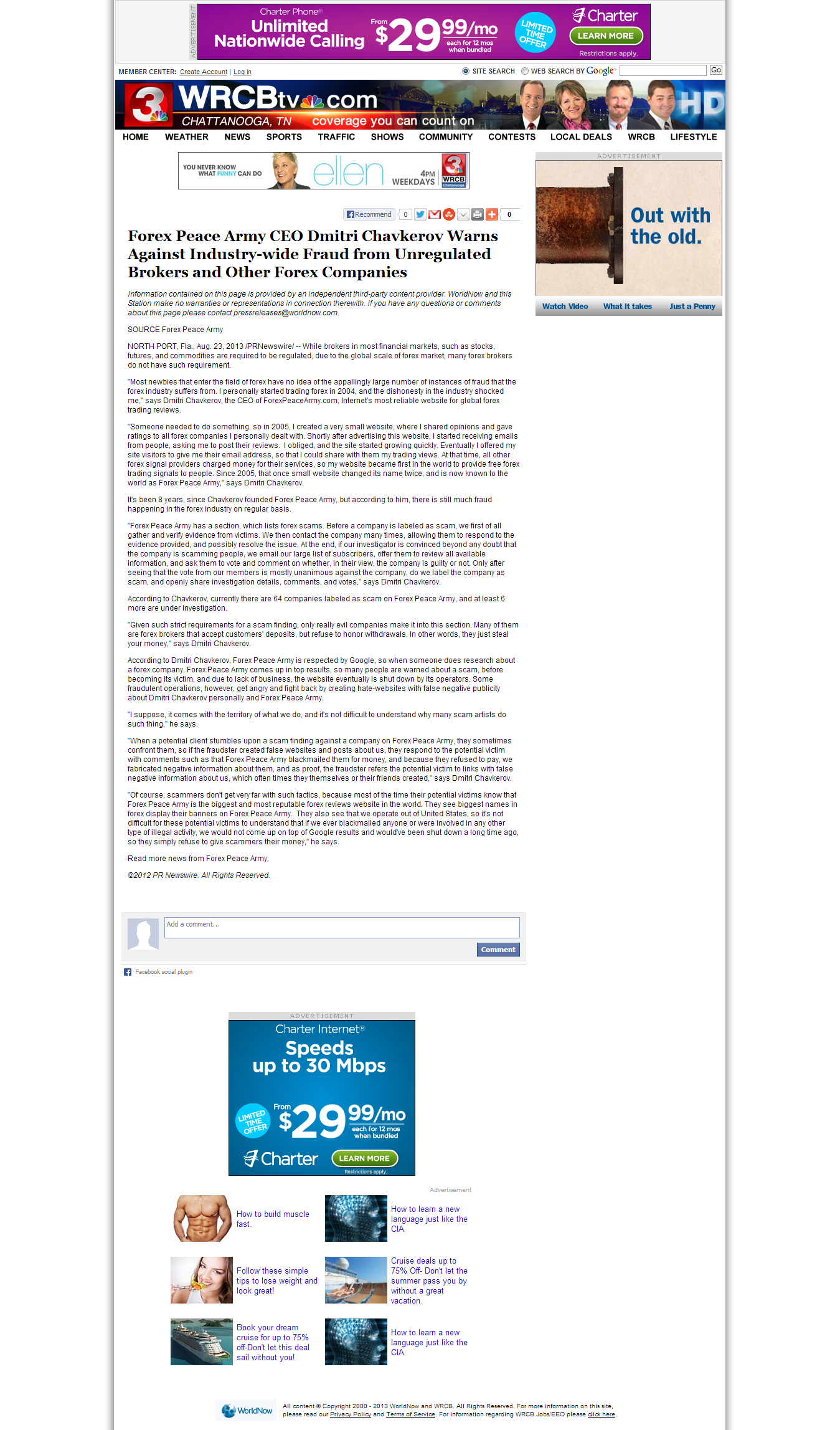 Forex Peace Army | Unregulated Forex Fraud Press Release in WRCB-TV NBC-3 (Chattanooga, TN)