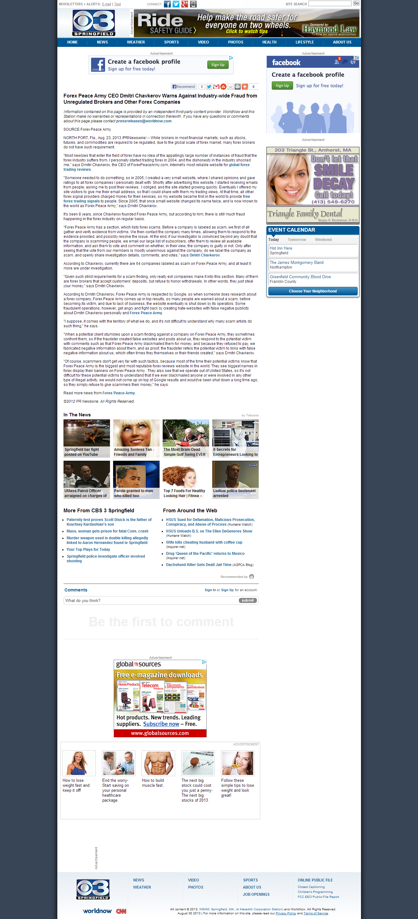 Forex Peace Army | Unregulated Forex Fraud Press Release in WSHM-TV CBS-3 (Springfield, MA)