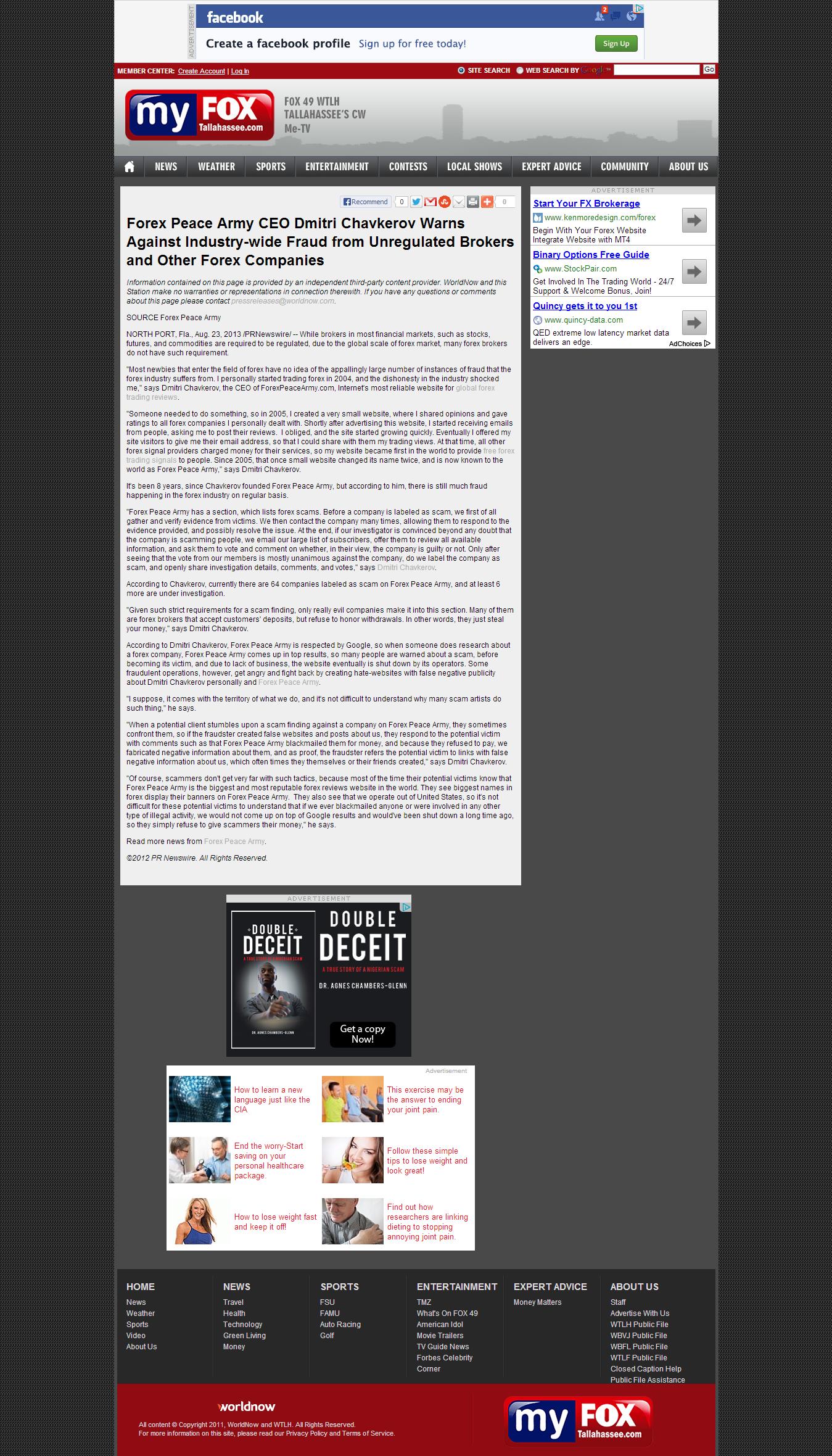 Forex Peace Army | Unregulated Forex Fraud Press Release in WTLH-TV FOX-49 (Tallahassee, FL)