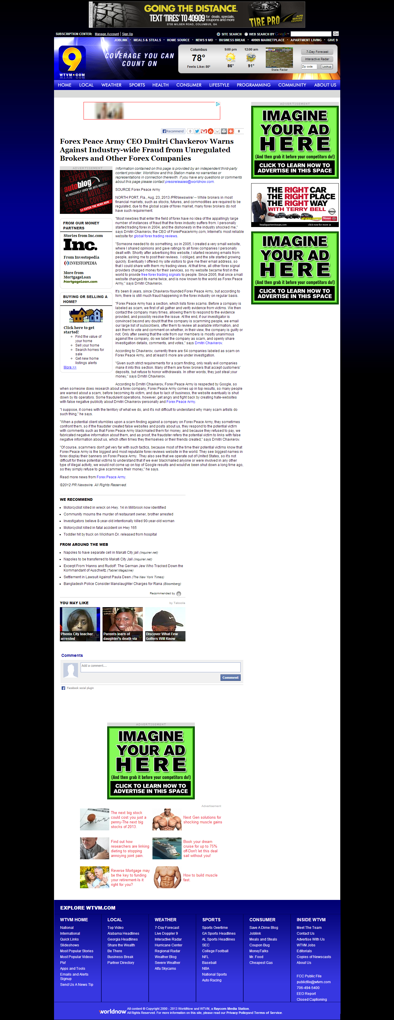 Forex Peace Army | Unregulated Forex Fraud Press Release in WTVM ABC-9 (Columbus, GA)
