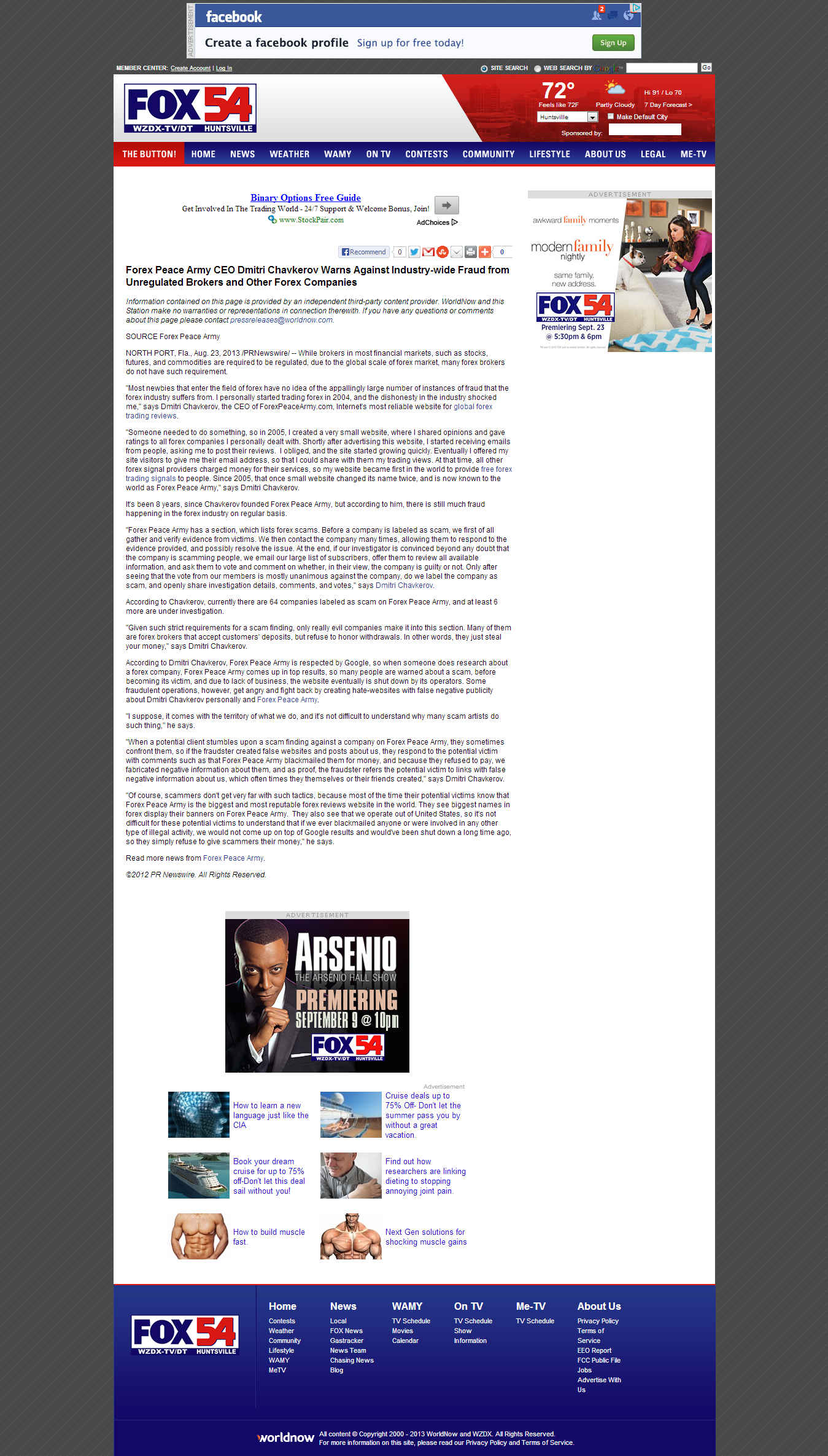 Forex Peace Army | Unregulated Forex Fraud Press Release in WZDX-TV FOX-54 (Huntsville, AL)